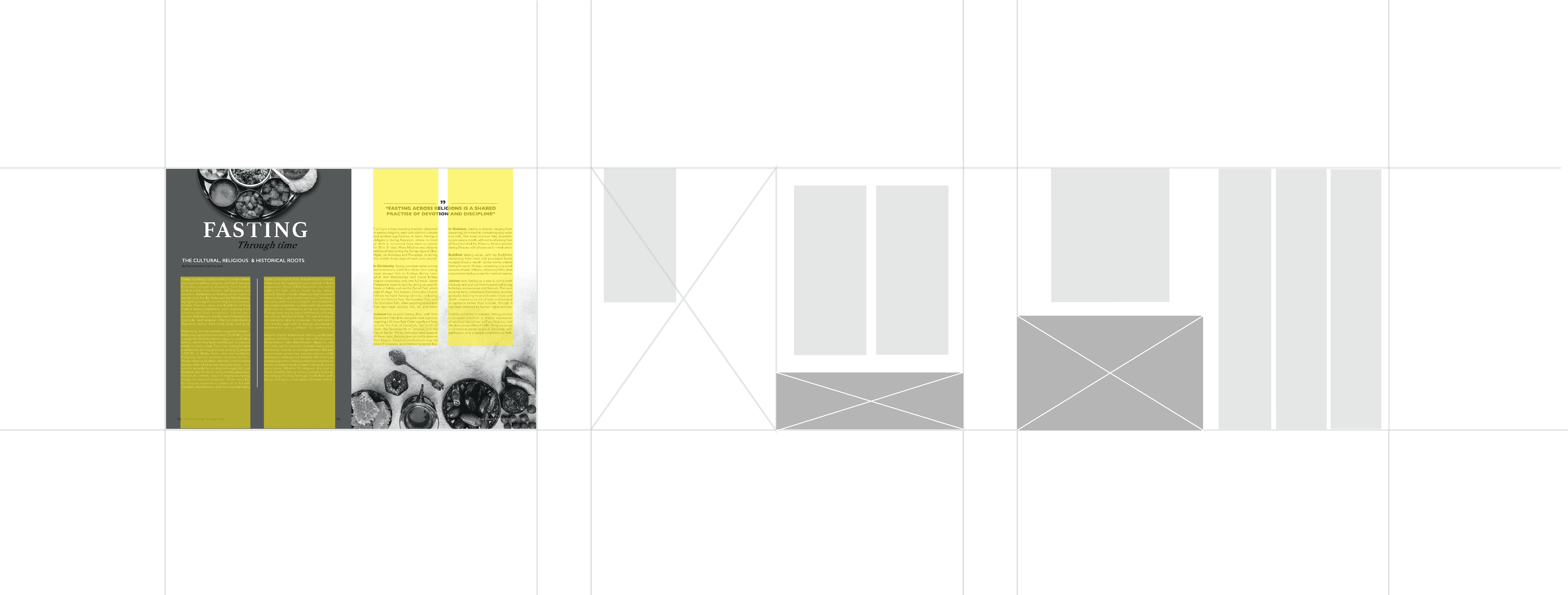 “Fast Food” - a magazine whose title plays on the irony between modern fast food and the ancient discipline of fasting. The magazine reinterprets this idea by exploring fasting as a cultural, spiritual, and scientific practice. The issue is structured to reflect the philosophy, culture and science of fasting.