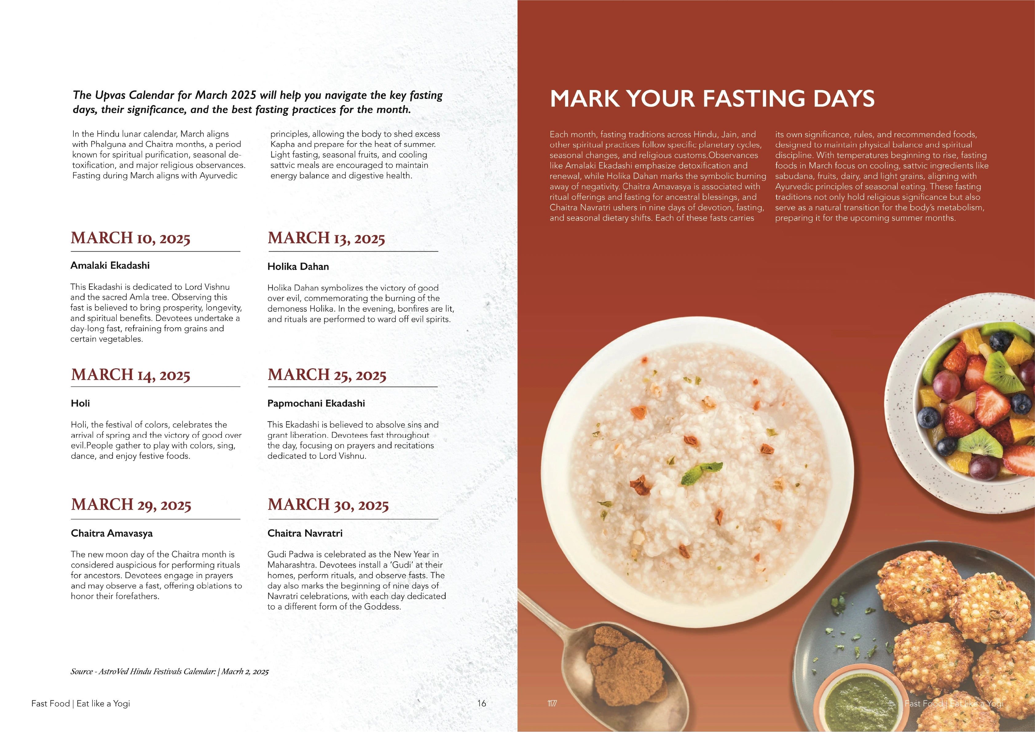 Here, it is used to present the Upvas Calendar for the issue month, paired with a page that explains each fasting day in detail.