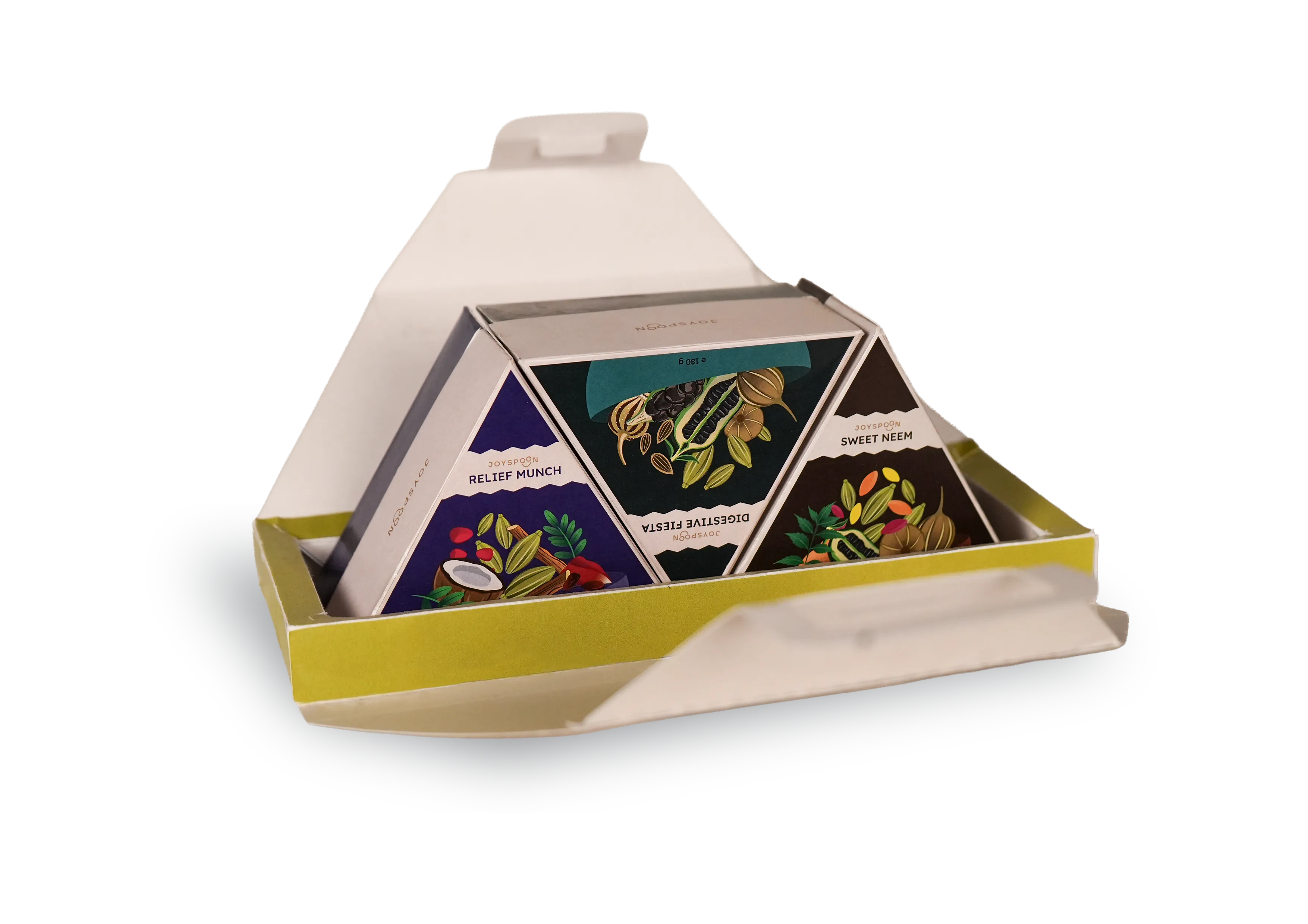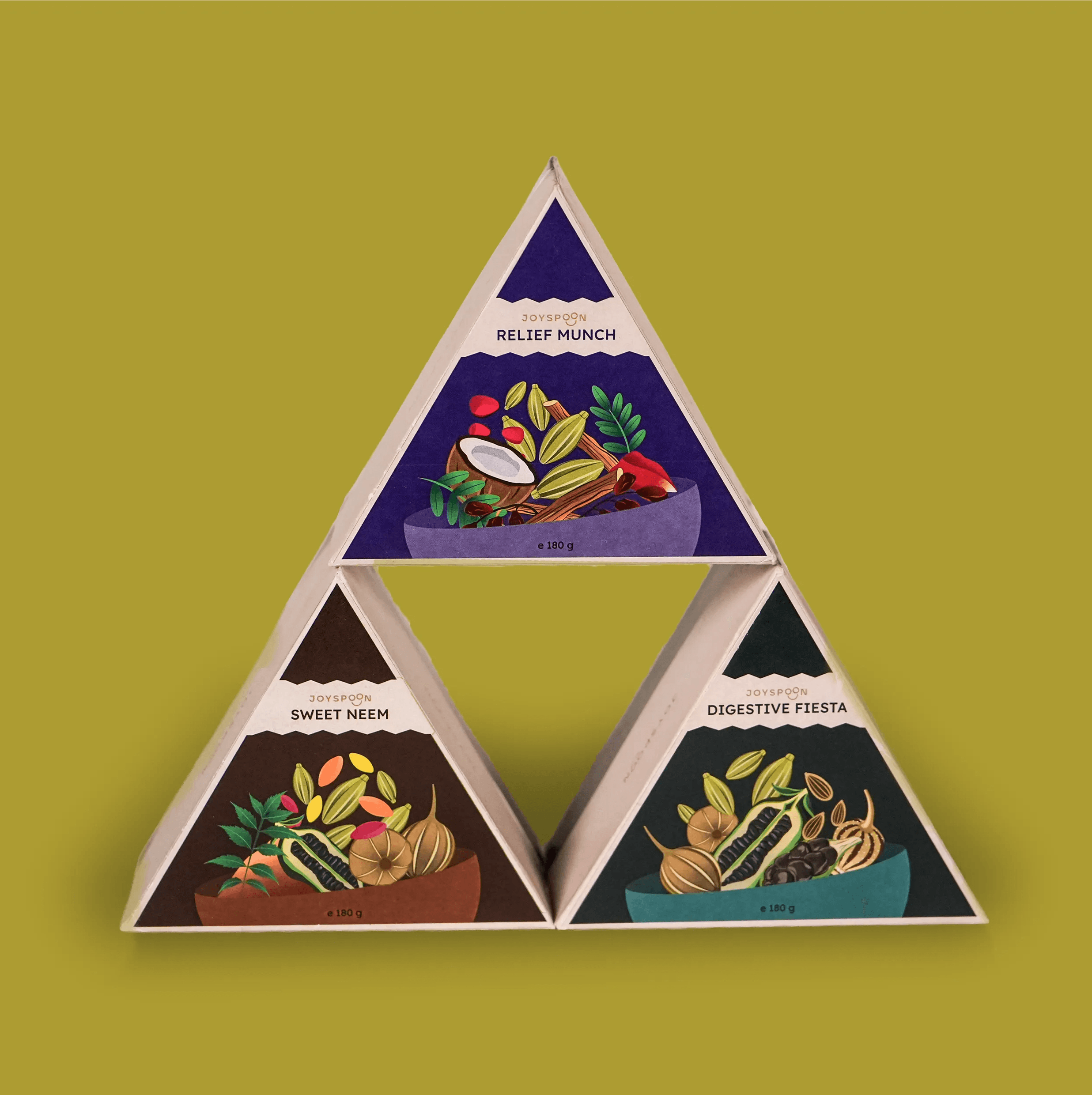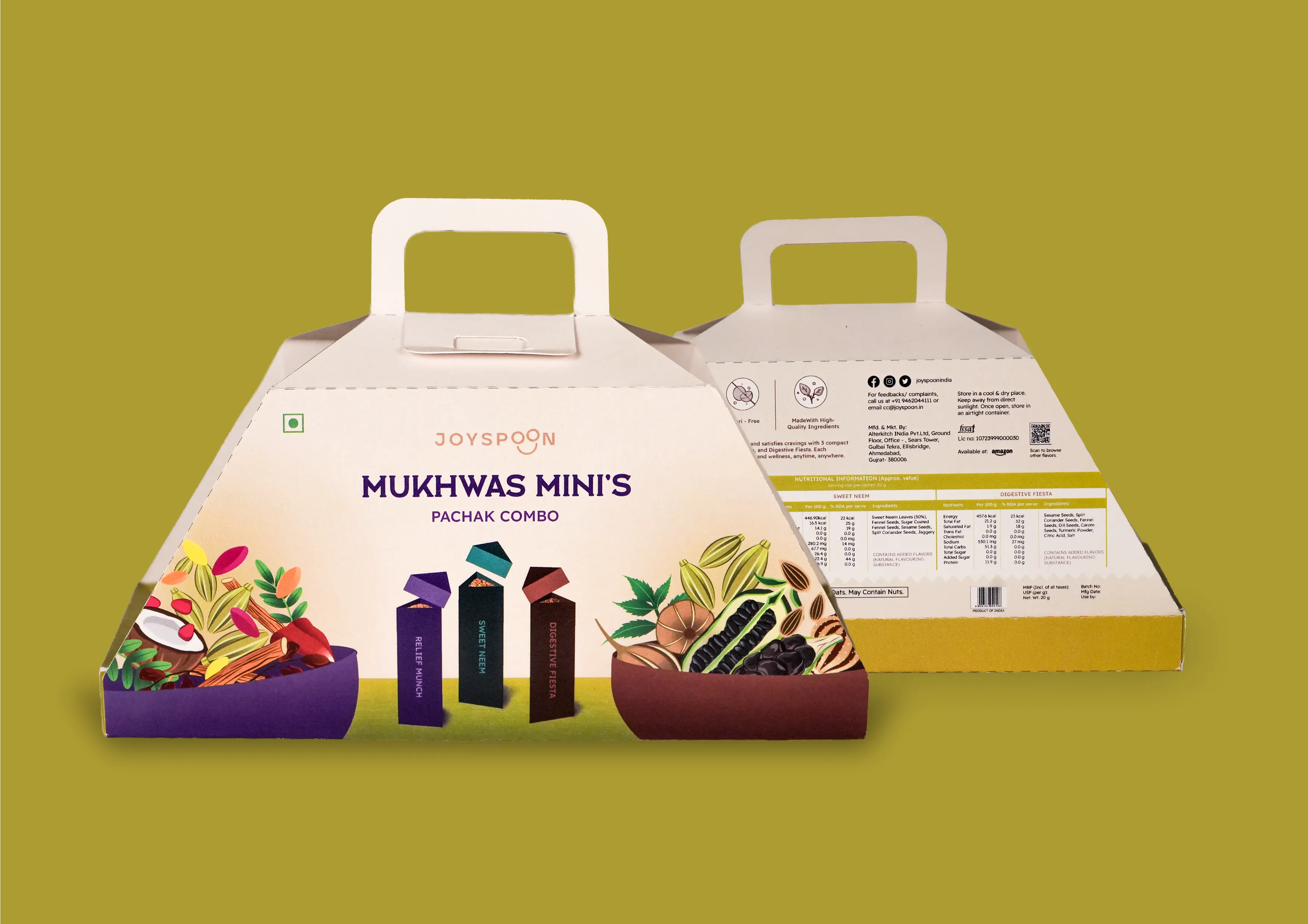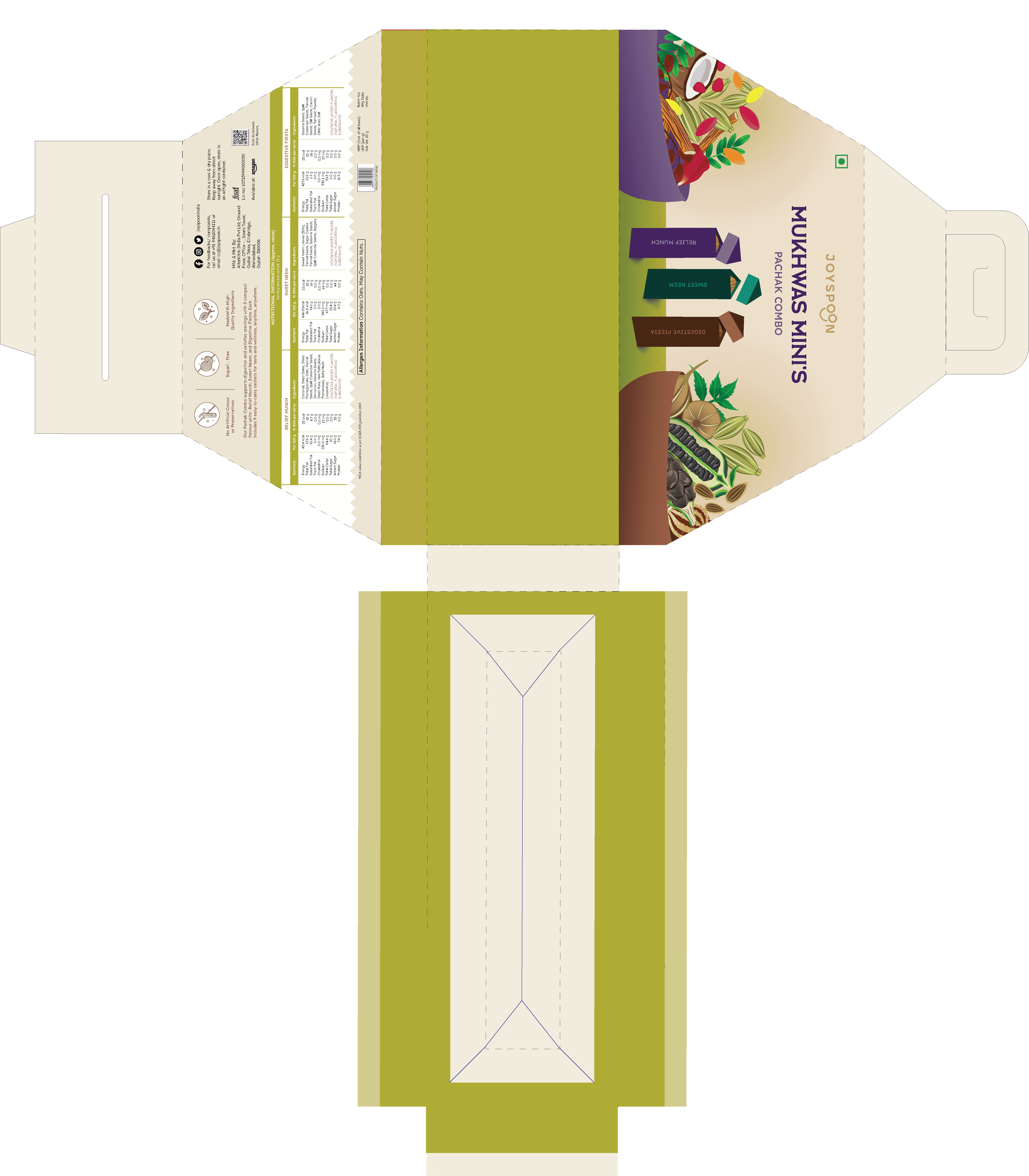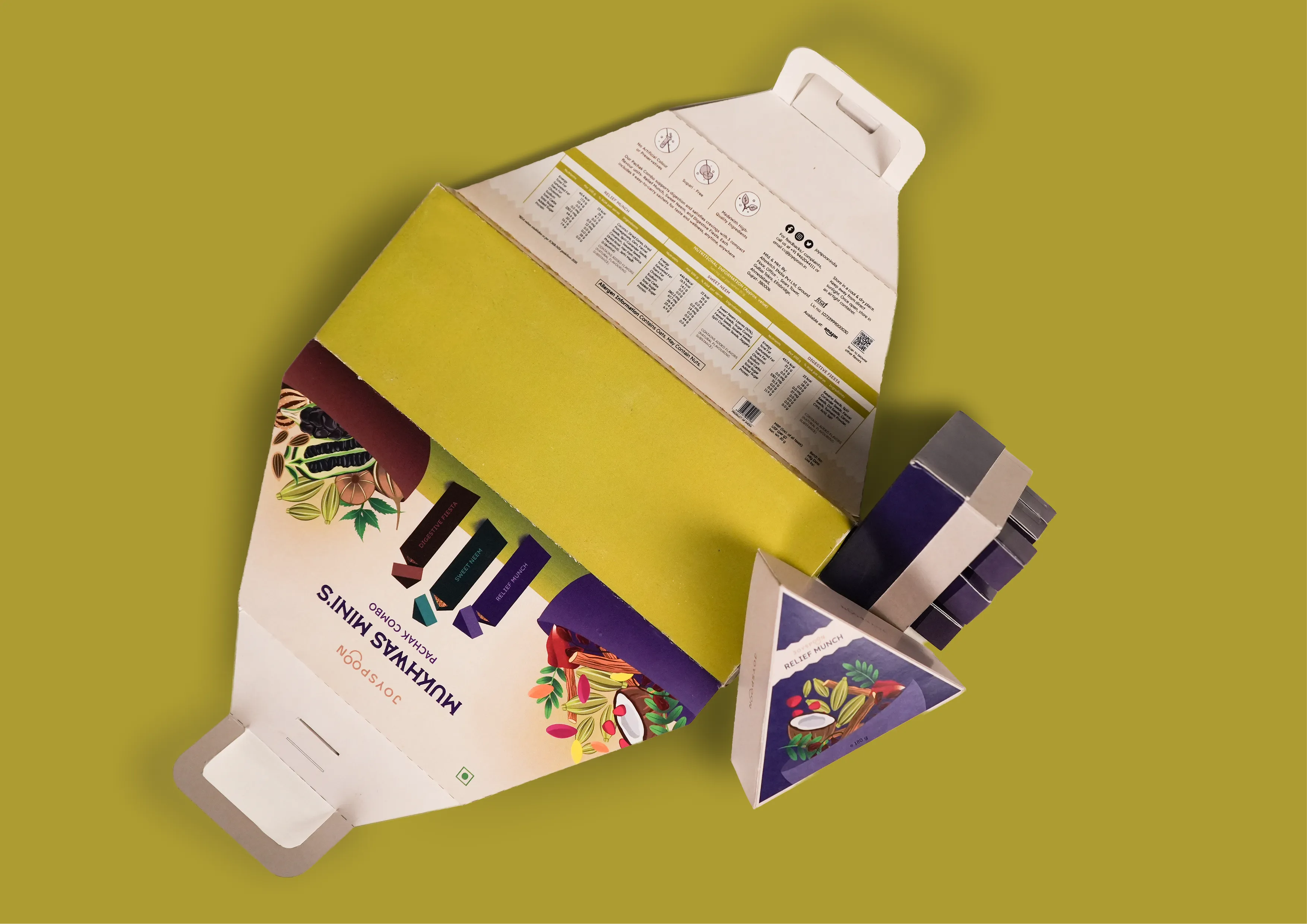 The idea was to expand Joyspoon’s offering by launching the Pachak Combo as Mukhwas Minis, a sub range with new structural and visual packaging format that works individually, visibly, and accessibly.