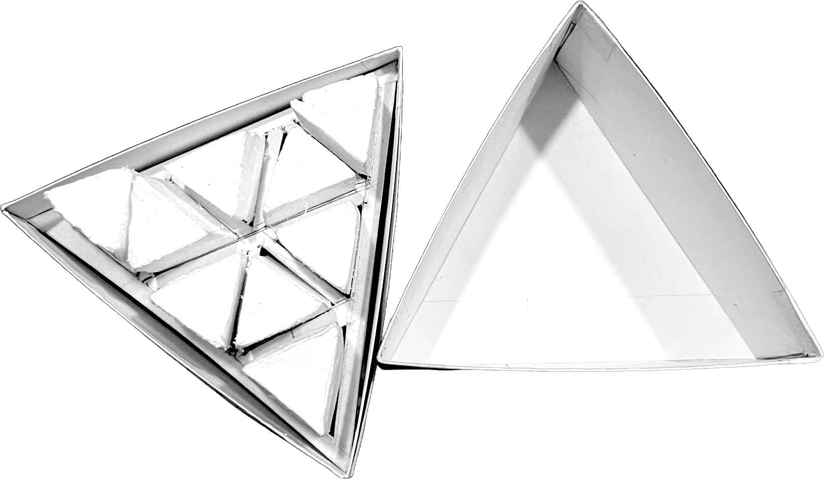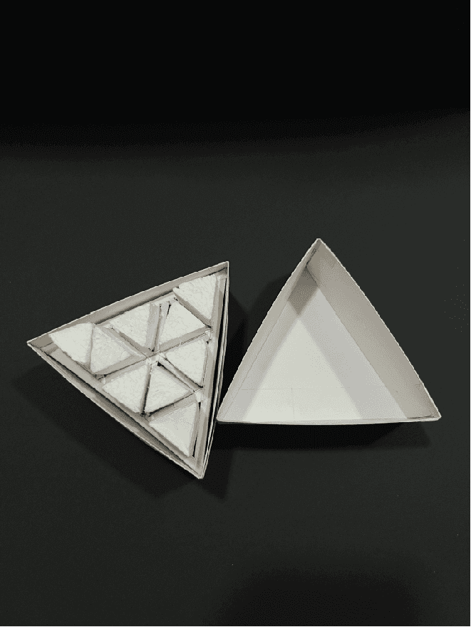 Stackable, space-saving triangular pack that replaces typical cylinders adding to its user experience.